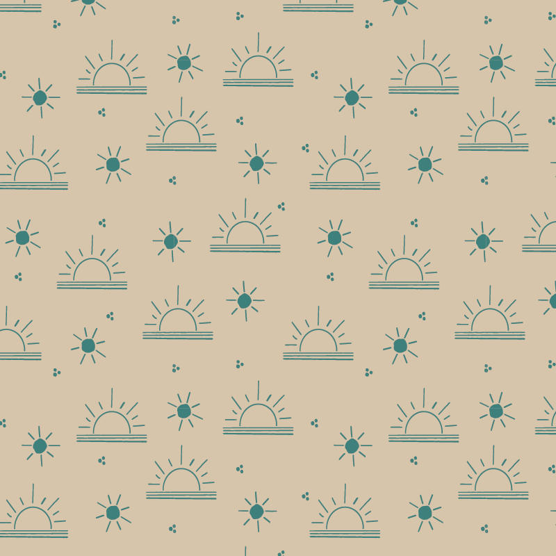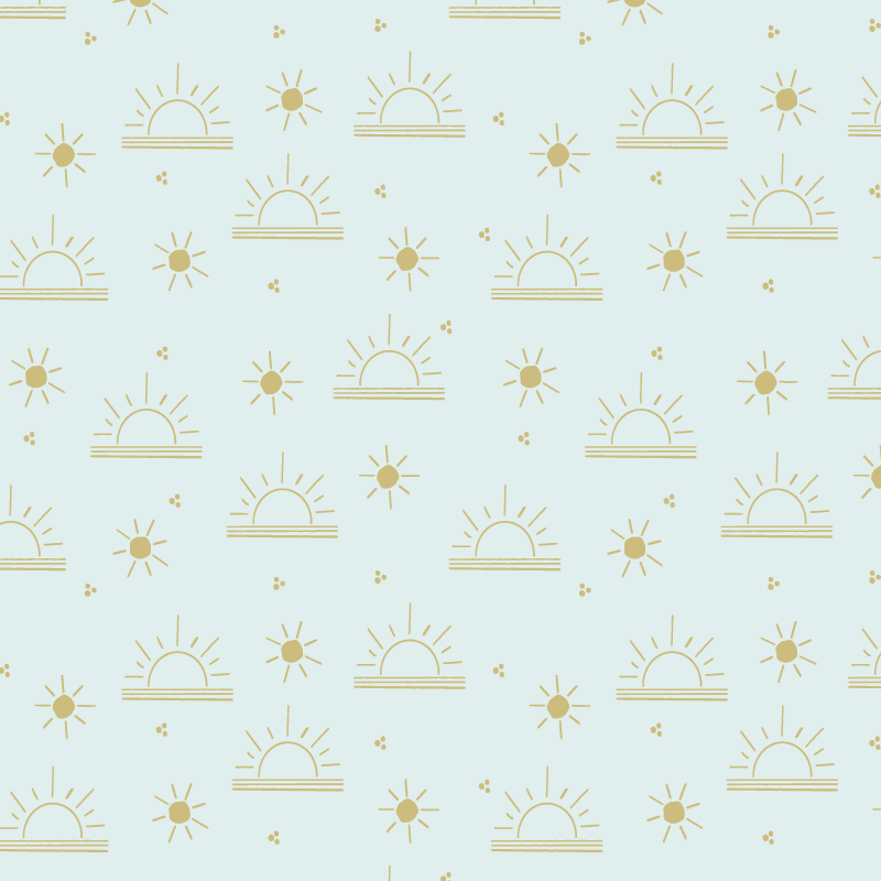Folly Daze Collection Sunset Motif in sand on soft blue background