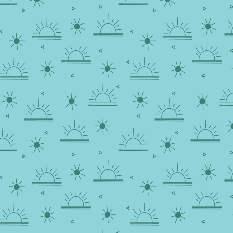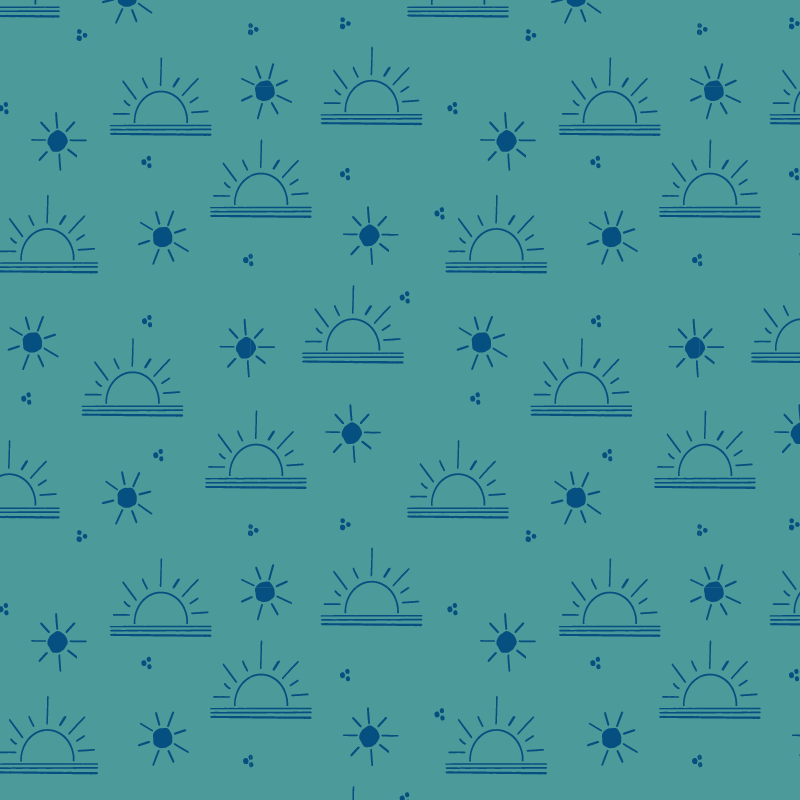 Folly Daze Collection Sunset Motif in dark blue on teal background